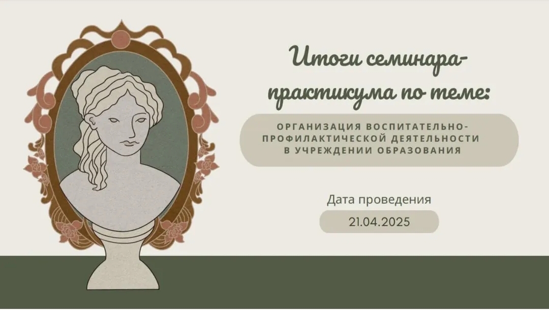 21.04.2025 среди педагогов-психологов, педагогов социальных учреждений образования г.Гомеля проведен семинар-практикум в "online"-формате по теме: "Организация воспитательно-профилактической деятельности в учреждении образования".