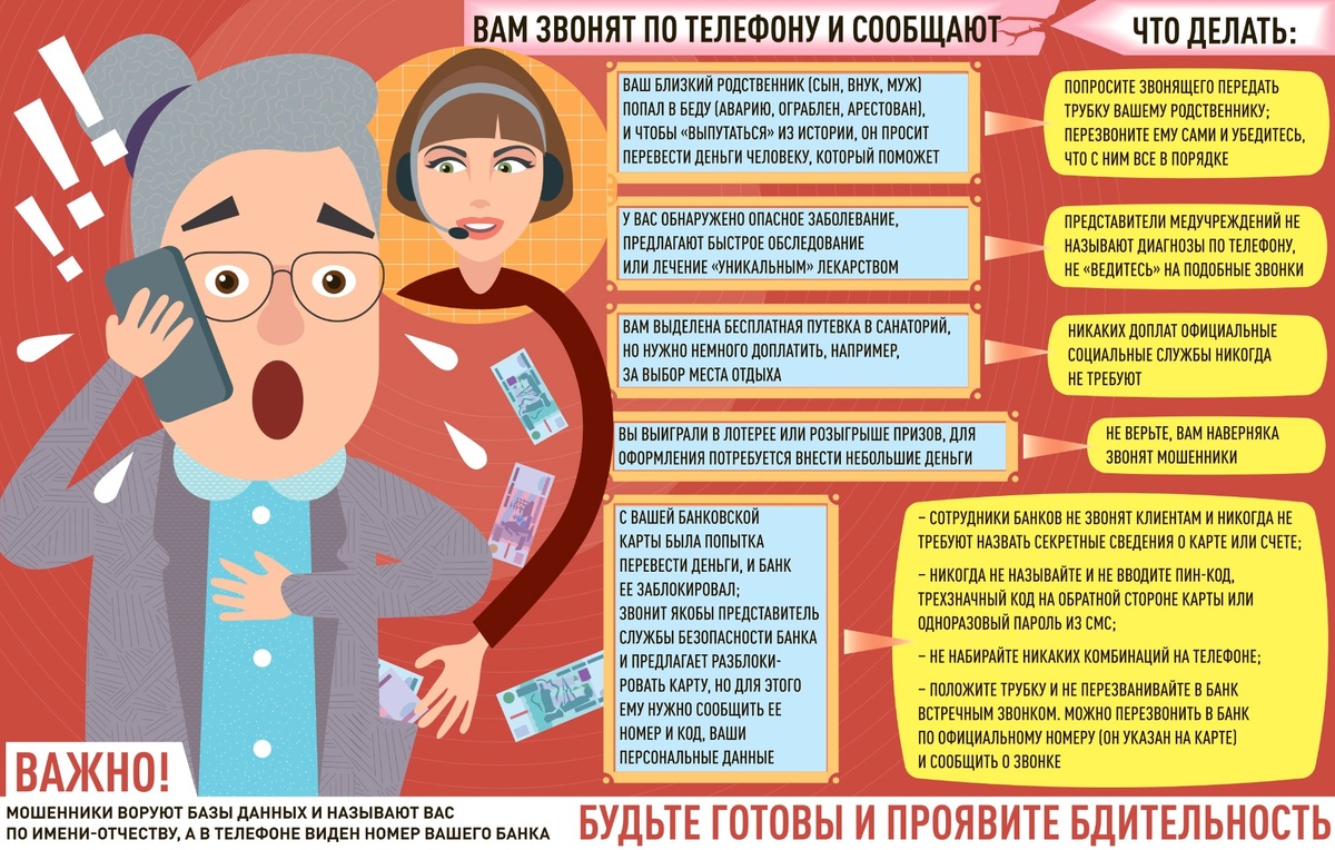 Наиболее распространенным способом интернет-хищения денежных средств является телефонное мошенничество в различных модификациях. Аферисты представляются работниками банков, коммунальных служб, водоканала, энергонадзора, служб газа и связи, сотрудниками правоохранительных и государственных органов, даже вашими знакомыми и родственниками. Чтобы похитить деньги мошенники под различными предлогами пытаются завладеть личными данными, включая коды из смс. Часто они действуют в паре. Например, первый под предлогом замены ключей от домофона выманивает числовой код из смс, а второй мошенник, представляясь правоохранителем, угрожает проведением обыска и изъятием денежных средств за передачу того самого кода. Или другой пример. Один мошенник представляется руководителем вашей организации и пугает подозрением в экстремистской деятельности